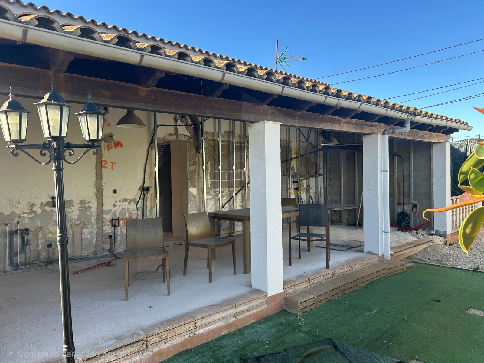 Cuenta con porche de 23 m², garaje independiente de 23 m² y almacén de 7 m².